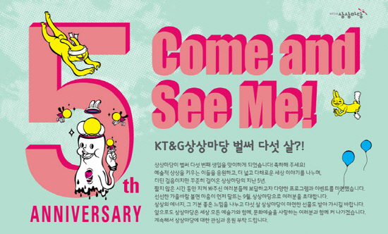 KT&G 상상마당은 2007년 9월에 개관한 이래 예술인들에게는 문화 예술 창작 활동 지원을, 일반인들에게는 넓은 문화 향유 기회를 제공하고 있다. 상상마당은 공연, 영화, 전시, 교육, 사진까지 다양한 분야의 트렌드를 제시하고 공유하면서 새로운 문화를 만드는데 기여하고 있다.