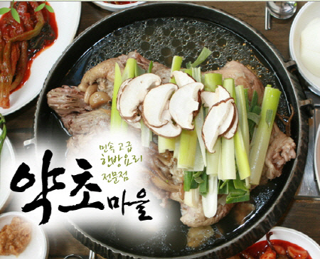 약초마을(www.greencho.co.kr : 대표 허윤덕)에서는 닭과 오리를 고유한 천연 양념과 생활 건강염인 인산죽염, 토종약제를 사용하여 죽염 삼계탕, 죽염 황기백숙, 죽염 옻닭, 죽염황기오리, 죽염 옻 오리, 죽염유황 오리 등을 현대인에 입맛에 맞게 요리하여 느끼하지 않고 쫄깃한 식감으로 다양한 연령층으로부터 호평을 받고 있다.