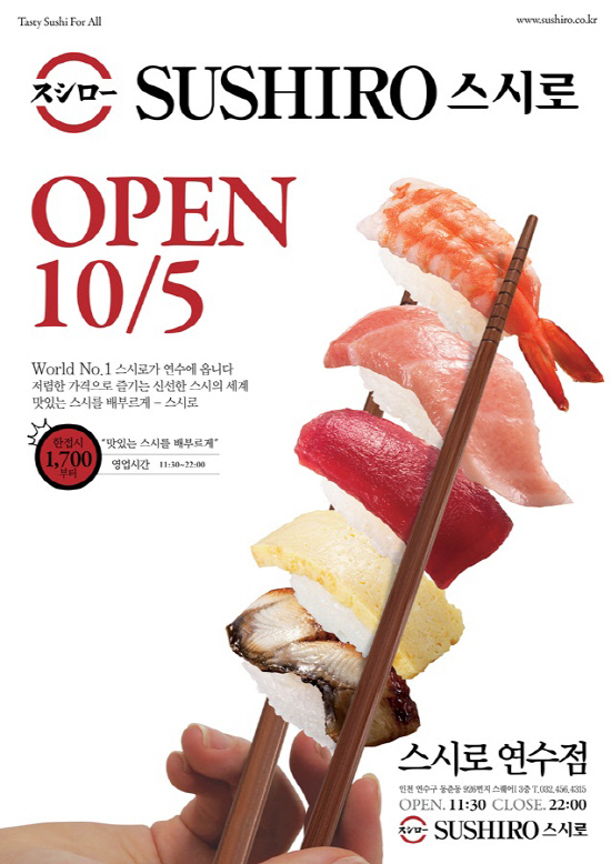 스시로는 일본 전역에 340여 개 매장을 운영하고 있는 세계 1위의 회전초밥 전문점으로 지난 2011년 12월 서울시 종로에 1호점을 오픈 하며 한국에 진출했다. 총 100여 가지의 메뉴를 즐길 수 있으며, 회전레일에서 350m를 지난 스시는 자동으로 폐기하고 50%에 육박하는 원가율로 신선하고 질 높은 스시를 저렴한 가격에 제공해 큰 호응을 얻고 있다.