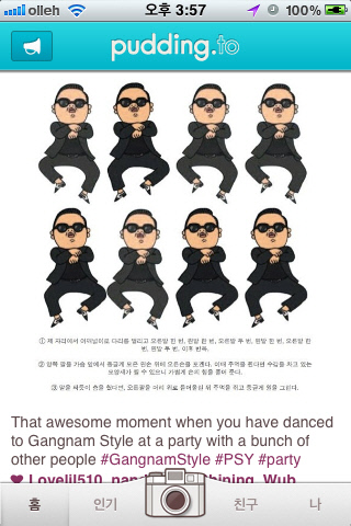 최근 세계 각지에서 싸이의 '강남스타일' 관련 사진들이 다수 게재되며 싸이의 인기도를 여실히 보여주고 있다. 순위에는 드러나지 않지만 푸딩.투 해외 사용자들이 싸이 관련 사진을 속속 올리며, 싸이 사랑을 보여주었다. 벨기에에서 강남스타일이 TV방송에 나온 장면을 올리거나 독일에서 여러 명의 학생들이 강남스타일 춤을 따라 추는 사진을 게재하는 등 관련 사진이 '푸딩.투'에 다수 게재되며 월드스타로 떠오른 싸이의 인기를 증명했다.