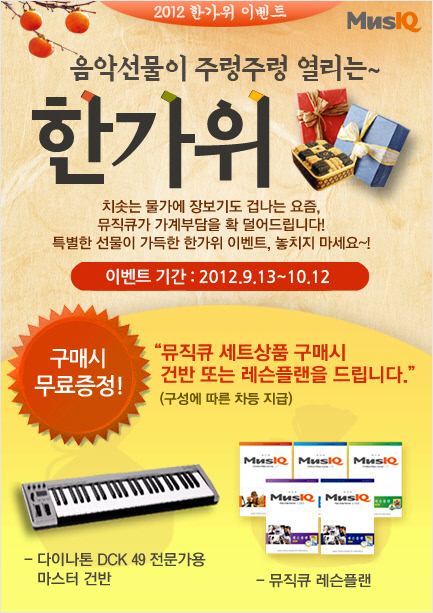 더존E&H(대표 최성길)는 민족 대명절 추석을 앞두고 13일부터 10월 12일까지 세계적인 음악&피아노 교육 프로그램 뮤직큐(MusIQ)의 고객 사은 행사를 진행한다.