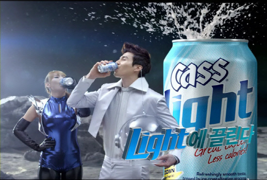 '카스 라이트' 모델인 이동욱과 씨엘(CL)이 이번엔 우주를 배경으로 '라이트 댄스' 대결을 펼친다.