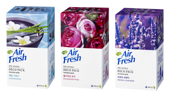 '홈즈 에어후레쉬 마이아로마 데코팩'은 △도나우강 인근에 자생하는 장미의 화려한 기품을 담은 '불가리안 로즈' △아시안 스파에 감도는 신선한 허브 향을 담은 '레몬 그라스' △프로방스의 따뜻한 햇살 속에서 바람에 흔들리는 라벤더의 향을 담은 '프렌치 라벤더' 등 3가지 향으로 출시됐다. 송진현 기자 jhsong@sportschosun.com