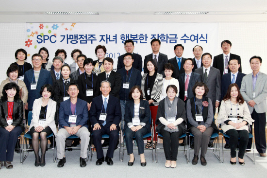 SPC그룹은 16일 'SPC 가맹점주 자녀 행복한 장학금 전달식'을 갖고, 파리바게뜨, 파스쿠찌, 배스킨라빈스, 던킨도너츠, 빚은 등 계열사 가맹점주 대학생 자녀 총 384명을 1차로 선발해 100만원씩 장학금을 전달했다.