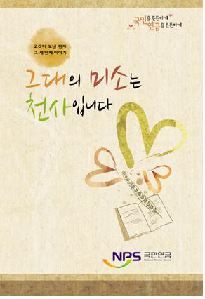 국민연금공단(이사장 전광우)은 고객이 보내온 공단의 서비스 감동 사연을 모은 고객감동 사례집인 '그대의 미소는 천사입니다' 를 발간하고 공단 전국 지사와 지자체 민원실에 배포했다고 19일 밝혔다. 배포처는 공단 지사 및 상담센터 141개소, 시청·군청·구청 민원실 261개소다.