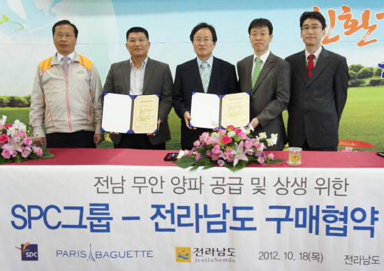 ㈜파리크라상(대표이사 최석원, 국가고객만족도 1위)의 대표 브랜드 파리바게뜨가 18일 전라남도(도지사 박준영)와 우수한 품질의 무안양파 사용 및 상생을 위한 업무협약(MOU)을 체결했다.