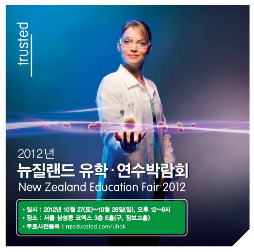 주한 뉴질랜드 대사관은 '2012 뉴질랜드 유학 연수 박람회'를 10월 27일 ~28일 양일간 서울 삼성동 코엑스 3층 E홀(구, 장보고홀)에서 개최한다. 박람회는 초등학교에서부터 대학, 기술전문학교 및 어학연수학교 등에 이르기까지 총 40여 곳 이상의 뉴질랜드 학교 관계자들이 직접 참석해 1:1 개인별 맞춤 상담 형식으로 진행 할 계획. 참가비는 무료이며, 참가 희망자들은 홈페이지 (www.nzeducated.com/uhak)를 통해 무료사전등록 후 방문을 하면 된다. 아울러 무료 사전등록을 통해 참석한 참가자들을 대상으로 현장 추첨을 진행, 뉴질랜드 대학에서의 4주 무료어학연수의 기회를 제공한다. 그 외 아이패드 및 외식 식사권 등 다양한 경품을 제공할 계획이다.