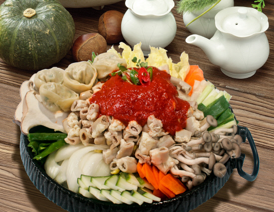 신메뉴 곱창만두전골은 아라쭈꾸미만의 곱창전골 양념장과 사골, 해물로 우려낸 육수로 만든 아라쭈꾸미만의 명품 메뉴이다. 시원한 국물과 곱창특유의 구수한맛과 쫄깃한 맛이 일품이다.