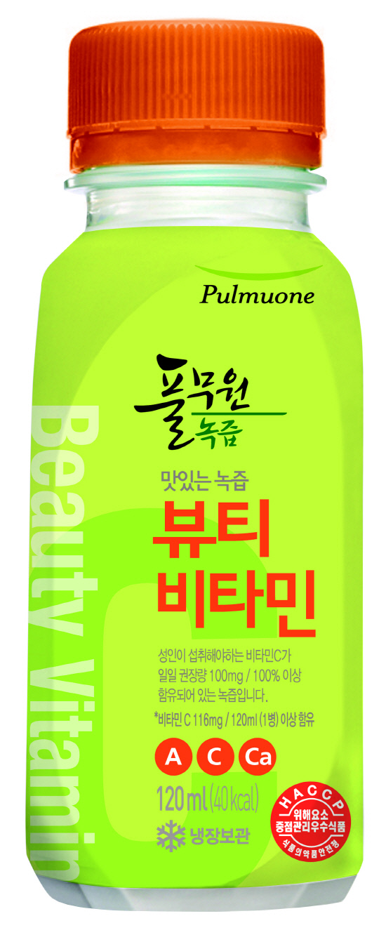 풀무원녹즙(대표이사 유창하, www.greenjuice.co.kr)은 천연 비타민C가 함유된 '맛있는 녹즙 뷰티 비타민(120ml, 1,700원)'을 더 커진 용량과 마시기 쉬운 병 타입 제품으로 출시한다.