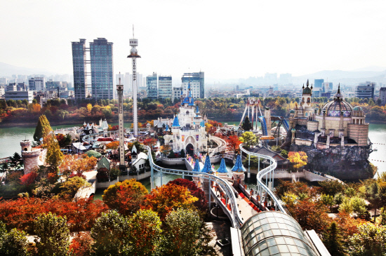 바야흐로 단풍 시즌이 활짝 열렸다. 굳이 멀리 있는 단풍 명산이 아니어도 좋다. 잘 가꿔진 테마파크 주변도 한 장의 그림엽서를 방불케 한다. 서울랜드, 롯데월드, 에버랜드 등 수도권 주요 테마파크는 지금 가을이 절정을 맞고 있다.