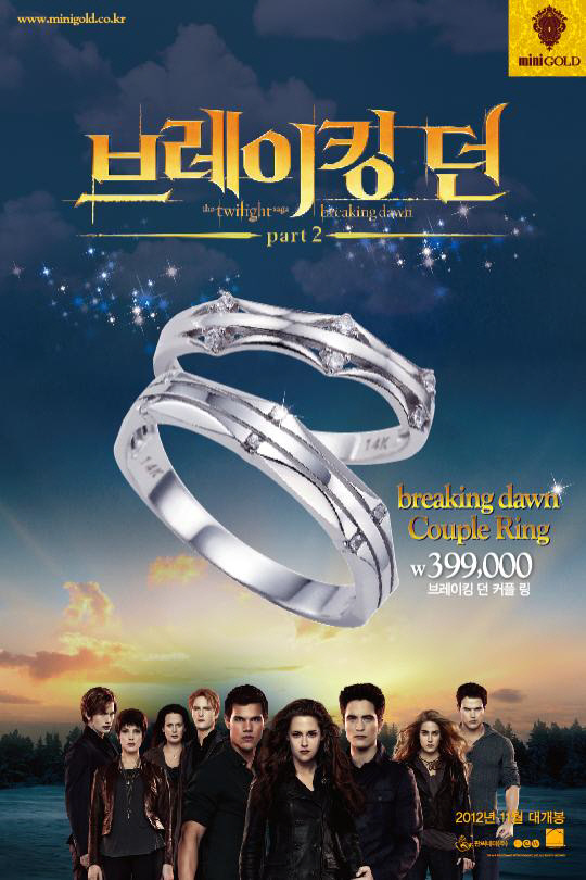 11월 15일 개봉되는 '브레이킹던 Part2'는 판타지 로맨틱 영화다. 미니골드에서는 두 주인공의 사랑을 상징하는 '브레이킹 던 커플링'을 출시했다.
