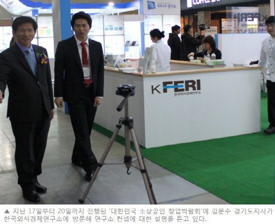 일산 킨텍스에서 지난주 성황리에 막을 내린 '2012 대한민국 소상공인 창업박람회'서 김문수 경기도지사가 한국외식경제연구소를 방문, 소상공인을 위해 노력해 달라고 당부한 것이 뒤늦게 알려지면서 한국외식경제연구소에 대한 관심이 높아지고 있다. 김문수 도지사는 '2012 대한민국 소상공인 창업박람회' 첫날인 17일 전시장을 찾았다. 참가한 업체들의 아이템을 둘러보는 등 전시장을 한바퀴 돈 후 관심을 가진 곳은 한국외식경제연구소다. 한국외식경제연구소는 소상공인들의 창업실패 확률을 줄이기 위해 배워 보고 창업할 수 있도록 외식창업학원을 운영중에 있다. 경기소상공인종합지원센터와 공동으로 '무료 퓨전분식창업 교육'도 진행중이다.