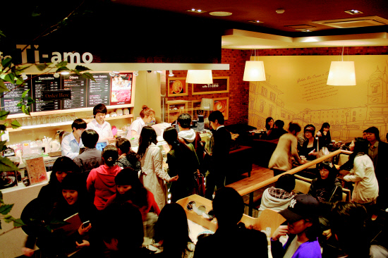 카페띠아모(www.ti-amo.co.kr)는 커피 이외에 이테리식 아이스크림 젤라또, 와플, 스무디 등을 접목했다. 메뉴의 다양화와 고급화, 인터넷 존, 토론 방, 북존 등 편리성 강화를 통해 멀티카페로 출발했다. 소비자의 새로운 소비 패턴에 부응한 결과는 멀티 카페 바람으로 이어지고 있다.