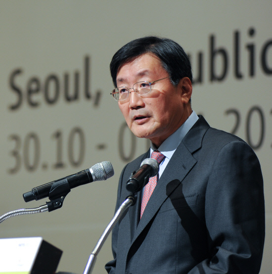 ◇국민연금 전광우 이사장이 ISSA(국제사회보장협회) 아시아 태평양 지역 포럼에서 환영사를 하고 있다.