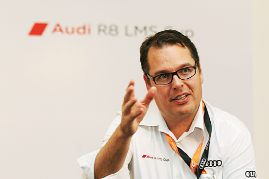 포겐라이터 사장은 전세계를 무대로 모터스포츠 이벤트를 벌이고 있는 아우디 R8 르망시리즈 컵에 직접 선수로 출전해 경기를 마친 뒤 땀에 흠뻑 젖어 상기된 표정으로 취재진과 마주했다.