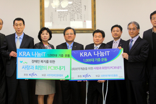 한국 IT복지진흥원과 한국장애인문화협회는 사회 취약계층에게 PC지원 및 교육 사업을 전문적으로 해온 비영리 민간단체로 이번에 기증한 불용 컴퓨터는 서울어머니학교, 강북장애인보호작업장을 비롯해서 전국에 있는 사회복지단체에 보급될 예정이다. 이와 더불어 한국마사회는 2014년까지 향후 3년간 총 1000대의 IT자산을 기증하는 'KRA 나눔IT 1000대 기증 프로젝트'를 추진해나갈 예정이다.