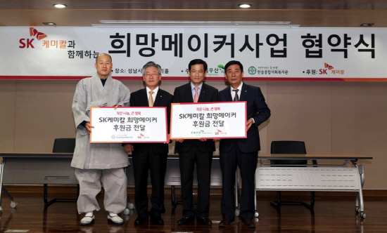 SK케미칼의 대표적인 사회공헌 프로그램인 '희망 메이커'는 단순 기부를 넘어 임직원이 복지기관 내 소외계층에 급여 중 일부를 지원하는 형태로 진행되며 △복지 기관 방문 봉사 △재능 나눔 등 저소득층 자녀와 노인, 장애우 등 다양한 계층을 대상으로 한 다양한 활동도 병행된다. 이번 협약식을 시작으로 주요 사업장이 있는 울산, 청주, 오산, 안동 등으로 확대될 계획이다.