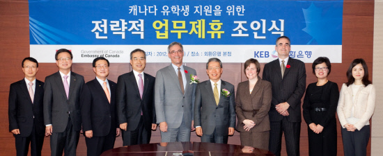 외환은행 (은행장 윤용로 / www.keb.co.kr) 은 주한 캐나다 대사관(대사 데이빗 채터슨 (David Chatterson)/www.korea.gc.ca) 과 지난 2일 외환은행 본점에서 캐나다 유학생 지원을 위한 '전략적 업무제휴'를 체 체결하고 2012 캐나다 유학박람회 참가 등 캐나다 유학생을 대상으로 공동 마케팅 및 적극적인 지원에 나서기로 했다.