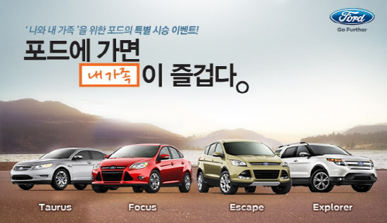 포드코리아가 올 연말까지 전시장을 방문하는 고객에게 시승과 경품을 제공하는 '포드에 가면 내 가족이 즐겁다' 특별 이벤트를 실시한다고 7일 밝혔다.