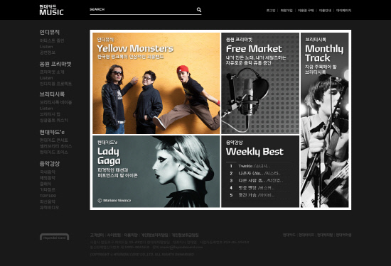 또, 현대카드는 음원 프리마켓 뿐만 아니라, <인디 뮤직>과 <브리티시록>, <현대카드's> 등 현대카드의 음악에 대한 안목을 경험할 수 있는 섹션도 마련해, 방문자들에게 다양한 즐거움을 주고 있다.