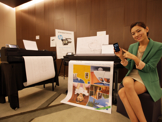 한국HP가 업계 최초로 웹 연결형(Web-connected)의 출력 솔루션을 탑재한 디자인젯 T-시리즈를 선보였다. 건축, 공학, 건설업계 종사자들을 위해 클라우드를 통한 대형 출력 솔루션 시장을 공략할 계획. 한국HP 관계자는 "대형 출력이 필요한 건축, 공학, 건설 업계의 경우 최근 프리랜서나 소형 스튜디오 형태의 작업이 늘어나면서 외근 비율이 증가하고 있다"고 말했다.