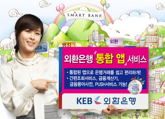 외환은행(은행장 윤용로/www.keb.co.kr)은 외환은행의 스마트폰뱅킹 관련서비스를 통합해 이용할 수 있는 '외환은행 통합 앱' 서비스를 시행한다고 15일 밝혔다.