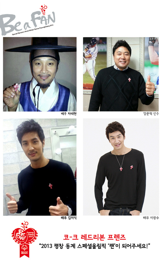 한편, 스페셜올림픽 첫 회부터 함께 해온 공식 후원사 코카-콜라사는 스페셜올림픽을 알리는 데 앞장서 준 '코-크 레드리본 프렌즈' 홍보대사 1인당 100만원씩 매칭하여 2013 평창동계스페셜올림픽조직위원회에 기부할 예정이다.