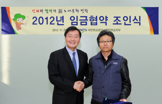 국민연금공단(이사장 전광우) 노사는 지난 5월부터 6개월 동안의 노사 협상 끝에 2012년도 임금협약을 4대 사회보험기관 중 가장 먼저 체결했다.