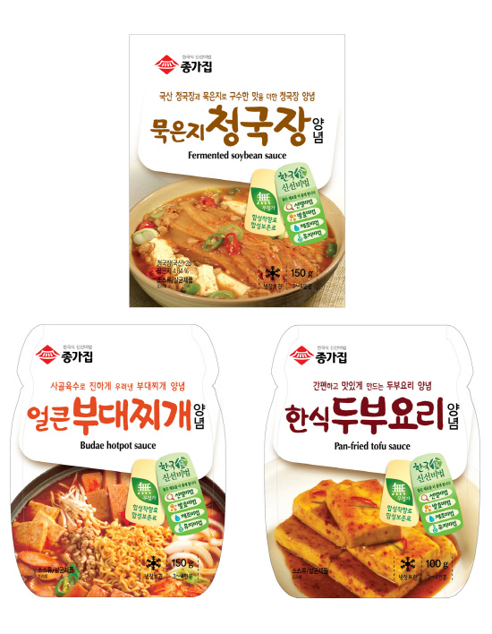 '묵은지 청국장 양념'은 우리 콩 100%로 만든 청국장에 국산 묵은지가 들어가 구수하고 감칠 맛을 낸다. '한식 두부요리 양념'은 두부만 살짝 구워 양념을 넣고 조리기만 하면 고춧가루, 마늘 등 갖은 양념이 두부에 쉽게 배어 들어가 3분만에 간편한 두부 요리가 완성된다. '얼큰 부대찌개 양념'은 진한 사골을 우려낸 육수를 사용해 깊고 진한 맛을 느낄 수 있다.
