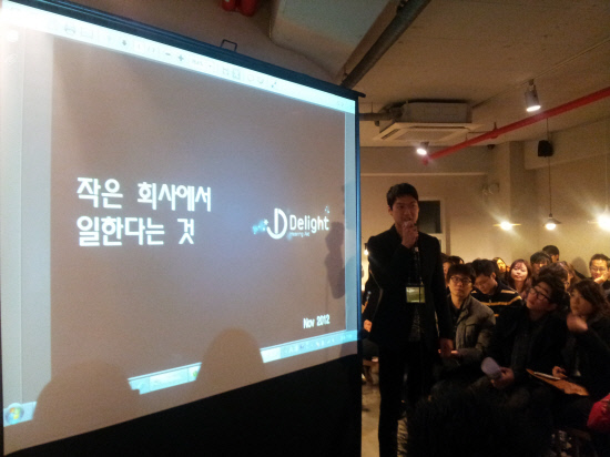 이날 딜라이트의 김정헌 팀장은 '내가 가는 길만 비추기 보다는 누군가의 길을 비춰준다면'이라는 주제로 다니던 대기업을 그만두고 딜라이트로 이직을 하게 된 계기와 자신의 경험담 등을 바탕으로 취업 준비생들에게 조언을 아끼지 않았다.