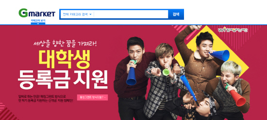 G마켓 마케팅실 김소정 상무는 "비싼 학자금으로 고민하는 대학생이 많아 이들에게 실질적인 도움을 제공할 수 있는 이벤트를 마련했다"며 "앞으로도 고객들의 실질적인 혜택을 제공하는 다양한 후원 프로그램을 진행할 예정"이라고 말했다. 자세한 사항은 G마켓 홈페이지에서 '등록금'을 검색하면 된다. 송진현 기자 jhsong@sportschosun.com