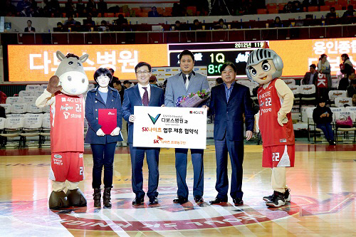 이날 업무 제휴 협약식은 다보스 병원 양성범 이사장과 SK나이츠 서정원 단장, 문경은 감독이 참석한 가운데 치러졌다. 이날 SK는 부산 KT 소닉붐을 꺾고 공동 1위에 올라서 업무 협약의 기쁨을 더했다.