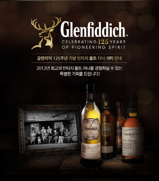 싱글몰트 위스키 '글렌피딕(Glenfiddich)'이 탄생 125주년을 기념해 세계적으로 한정 생산된 빈티지 위스키를 시음해 볼 수 있는 <글렌피딕 빈티지 위스키 디너>행사를 개최한다고 밝혔다.