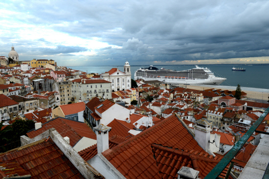 트램을 타고 올라가자면 알파마에서 가장 오래된 동네가 나선다. 대서양쪽으로 붉은색 기와지붕과 도시 전경이 펼쳐지고 인근 항구에는 대형 크루즈 유람선이 정박해 있어 멋진 풍광을 자아낸다.