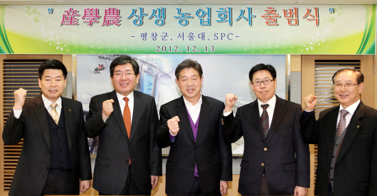 SPC그룹(회장 허영인)이 13일 서울대학교, 강원도 평창군 농협조합공동사업법인과 손을 잡고 상생 농업회사법인 에스팜(SFARM)을 출범했다.