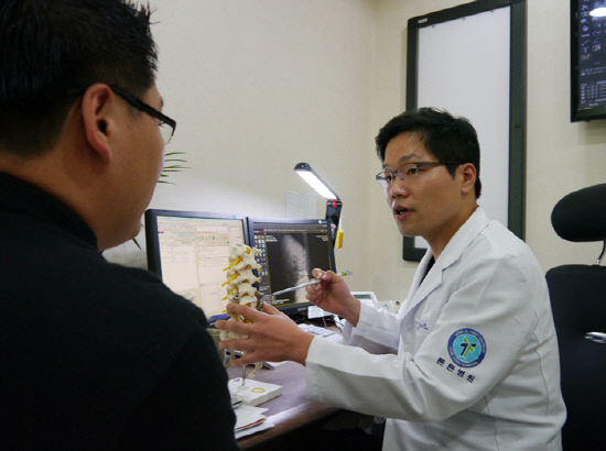 요통과 다리에 힘이 빠지는 증상으로 허리디스크 치료를 받아왔으나 증상이 나아지지 않아 전문병원을 찾은 이완호 씨(66)는 뜻밖에도 목디스크라는 판정을 받았다. 정밀검사 결과 이씨는 파열된 목디스크가 척추 내 주요 신경을 눌러 염증을 일으키는 척수병증을 앓고 있는 것으로 나타났다.