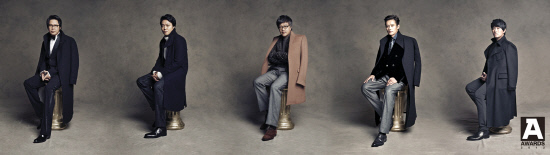 ◇2012 A-어워즈 수상자. 왼쪽부터 미술가 박찬경, 프로듀서 신원호, 영화감독 최동훈, 배우 이병헌, 가수 이승철