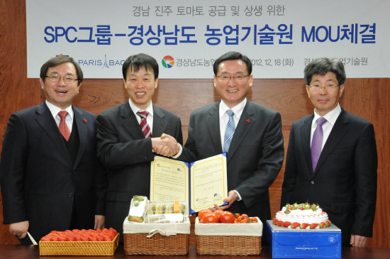 ㈜파리크라상(대표이사 최석원, 국가고객만족도 1위)의 대표 브랜드 파리바게뜨가 18일 오전 경상남도농업기술원(원장 최복경)과 우수한 품질의 진주 토마토 사용 및 상생을 위한 업무협약(MOU)을 체결했다.