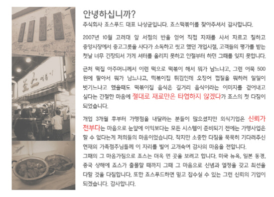 죠스떡볶이 측은 "1년 이내 동일 문제 3회 이상 발생시 내용증명 발송 후 가맹계약 해지까지 할 수 이도록 정해진 기존 '삼진 아웃제'를 더욱 철저히 적용하겠다. 동일한 문제가 재발하지 않도록 철저히 관리, 고객만족 서비스에 앞장서겠다"고 강조했다. 전상희 기자 nowater@sportschosun.com