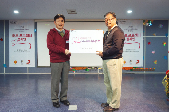 소니코리아(대표 사카이 켄지)가 18일 서울 동작구 상도동에 위치한 사회복지법인 청운종합복지원 소속 아동양육기관 '청운보육원'에서 '2012 소니코리아 러브 프로젝터 캠페인'을 개최했다. 소니코리아는 1990년 창업 이래 저소득층 혹은 문화소외지역 어린이들 중심으로 약 2만 명의 아이들의 꿈과 창의력을 후원하는 활동을 펼쳐오고 있다.