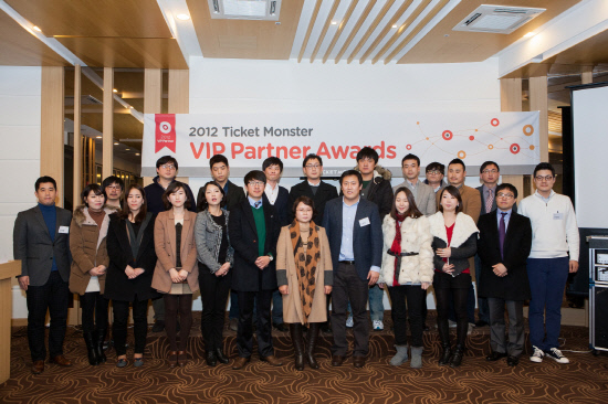 티켓몬스터(대표 신현성)가 운영하는 국내 대표 소셜커머스 티몬(www.tmon.co.kr)이 27일 오후 티켓몬스터 본사에서 2012년 티몬을 빛낸 최고의 파트너를 선정, 시상하는 '2012 티켓몬스터 VIP 파트너 어워즈 (2012 Ticket Monster VIP Partner Awards)'를 진행했다고 밝혔다.