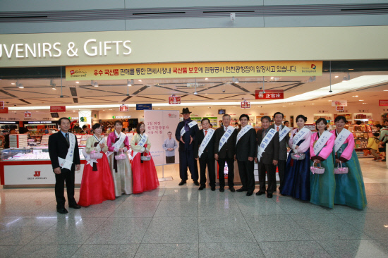 한국관광공사 이참 사장은 최근(27일) 인천국제공항 내 관광공사 면세점 일일점장으로 나서 국산품 홍보활동을 전개했다. 이번 행사는 출국장 면세점이 해외명품 브랜드만 판매하는 곳이 아니라 우수한 국산품도 많다는 것을 내외국인 관광객들에게 홍보하기 위함이다.
