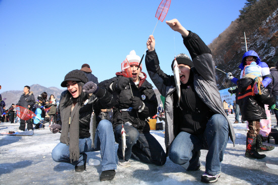 산천어낚시는 간단한 방법만 알면 누구나 파이팅 넘치는 손맛을 볼 수 있다.
