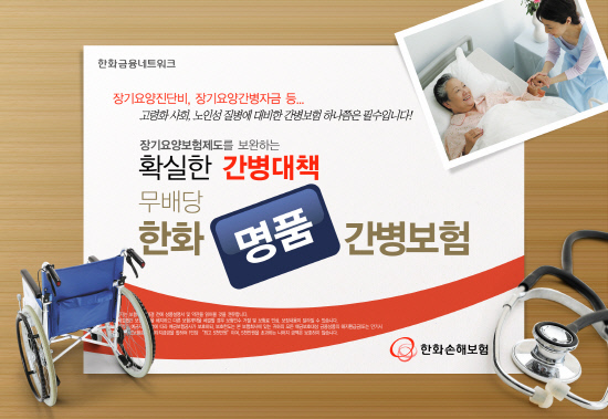 한화손해보험이 3일 '무배당 한화명품간병보험' 판매에 들어갔다. 이 상품은 노인장기요양보험의 장기요양등급에 따라 최대 100세까지 간병비와 간병자금, 각종 상해나 질병으로 인한 유족 및 생활자금까지 보장받을 수 있는 노년층 대상 전문보험이다.