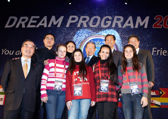 | ◇지난 6일 강원도 평창 알펜시아에서 열린 외환은행과 강원도간 『2013 드림프로그램』후원 협약식에서 윤용로 외환은행장(사진 뒷줄 왼쪽에서 세번째)과 최문순 강원도지사(사진 뒷줄 왼쪽에서 네번째)가 협약식에 참석한 내·외빈 및 전세계 40개국에서 이번 『2013 드림프로그램』참가한 청소년들과 기념사진 촬영을 하고 있다 . |