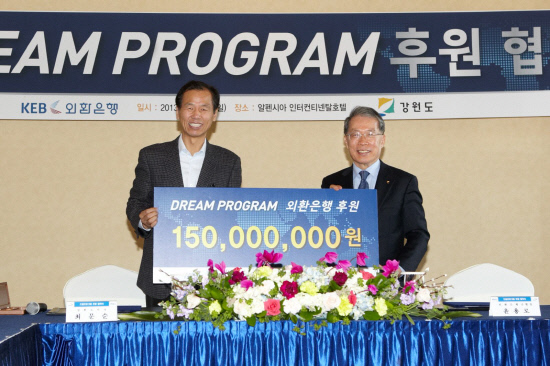 외환은행(은행장 윤용로/www.keb.co.kr)은 지난 6일 강원도 평창 알펜시아에서 강원도(도지사 최문순)와 '드림프로그램'후원 협약을 체결했다고 7일 밝혔다.