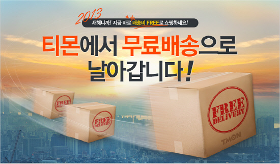 한편, 티몬은 스토어 인기 아이템들의 배송비를 지원해주는 새해맞이 무료배송 기획전을 7일부터 시작한다. 다이어트, 건강 관리, 주름살 없애기 등 소비자들이 대부분 갖고 있는 새해 결심들을 반영해 '2013 도전! 다이어트', '도전! 피부미인', '도전! 슈퍼맘', '도전! 패셔니스타'라는 네 카테고리에 걸쳐 다양한 아이템들의 배송비를 지원해 고객들의 신년쇼핑 혹은 신년선물 계획에 보탬이 되어줄 예정이다.