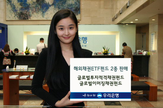 우리은행(은행장 이순우)이 최근 급속도로 성장하고 있는 글로벌 ETF 시장에 맞추어 중수익 중위험군인 해외채권ETF펀드 2종을 판매한다. 글로벌 ETF 시장은 1993년 미국에 최초로 상장된 이후 2012년 10월말 기준 1조8394억 달러 규모로 커졌으며 향후 2015년까지 5조달러 규모로 커질 것으로 예상되어 저금리 시대에 새로운 투자 트렌드로 떠오르고 있다.