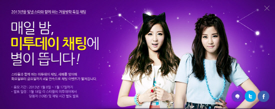 미투데이가 2013년을 빛낼 스타와 함께하는 겨울방학 맞이 이벤트 <매일 밤, 미투데이에 별★이 뜹니다> 를 진행한다.