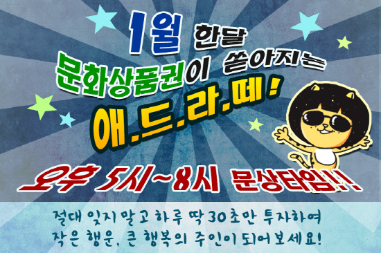 '애드라떼'를 운영하고 있는 앱디스코 (대표 정수환)는 새해 맞이 문화 상품권 증정 이벤트를 1월 한달 동안 실시한다. 이벤트는 새해를 맞아 모티즌들이 부담 없이 다양한 문화생활을 즐기도록 하자는 취지에서 마련됐다. 매일 20명에게 문화 상품권5000원권을 증정한다는 게 앱디스코 관계자의 말이다.